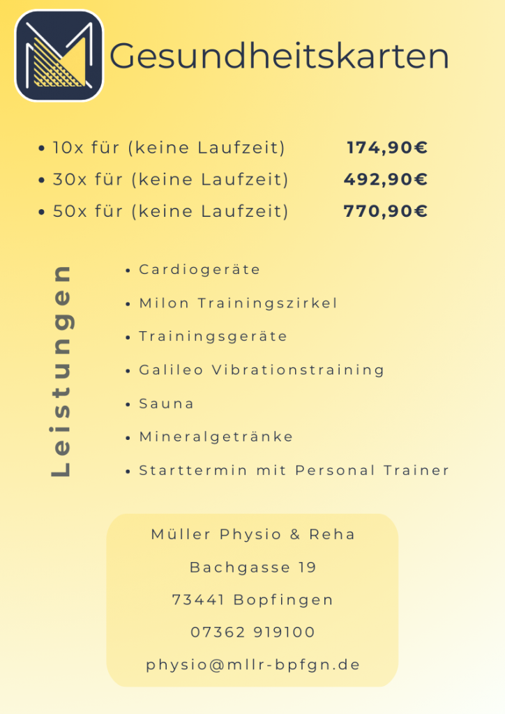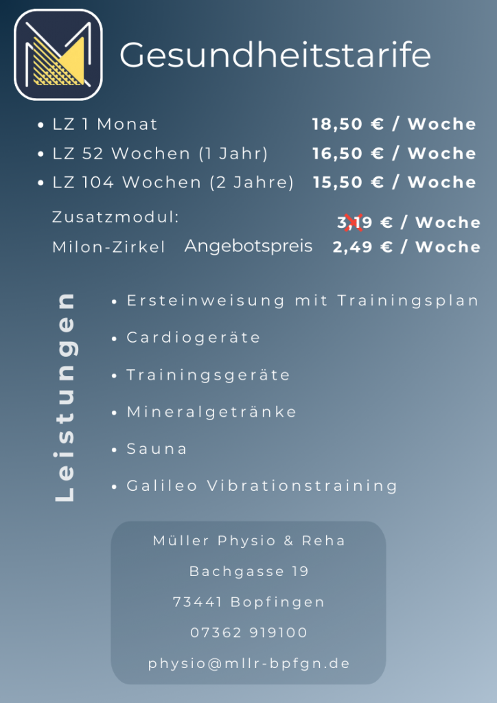 Durch die enge Zusammenarbeit mit unseren Physiotherapeuten erarbeiten wir gemeinsam im Team ein auf Sie individuell zugeschnittenes Trainingsprogramm um optimal Ihren Bedürfnissen nachzukommen.